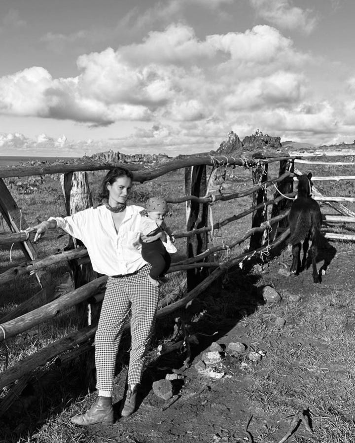 ANA: Rapa Nui feels like meditation. Life here is about essentials: tending the land, caring for animals, and living in the moment. The community is incredibly supportive. It’s a stark contrast to individualistic Western culture. The concept of “use what you’ve got” is deeply ingrained and inspires me creatively and spiritually. It’s so different from the individualistic culture of the U.S., where self-reliance often replaces communal care. This sense of togetherness has deeply influenced how I approach parenting and creativity.